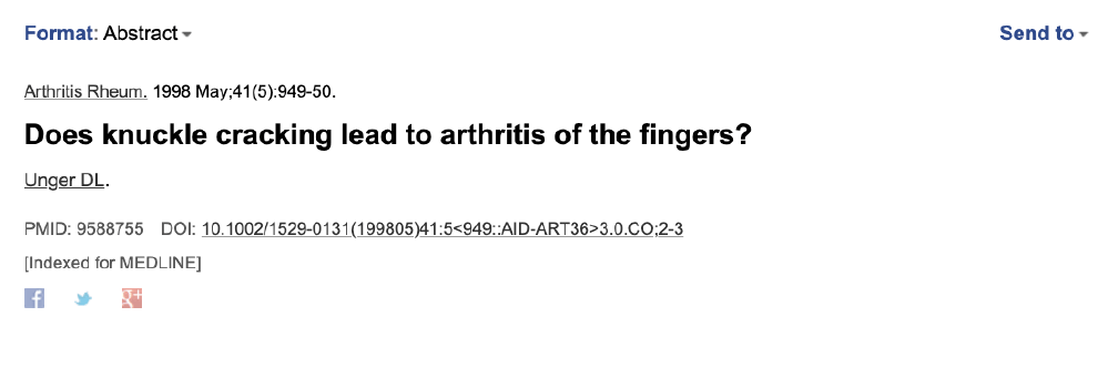 1998年,美國加州的醫生昂格爾曾發表一篇「折手指會導致關節炎嗎」的研究,讓他在 2009年獲得搞笑諾貝爾獎。