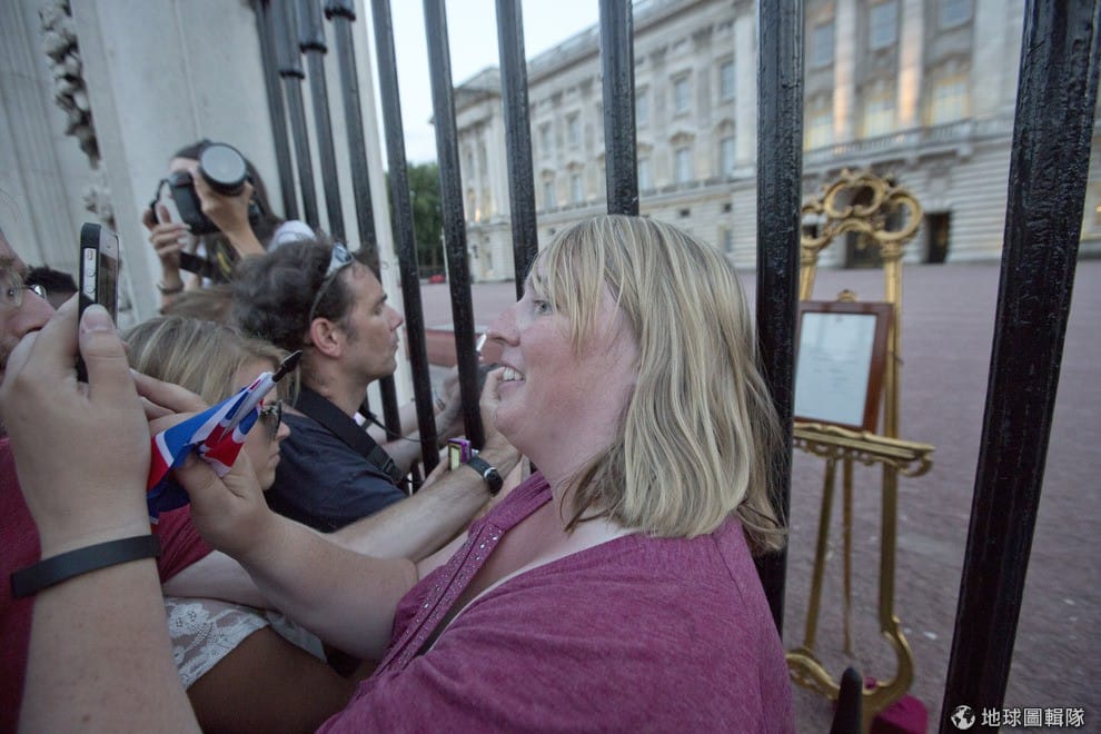 路透社英國白金漢宮外擠滿等著聽好消息的群眾,當昭告王室小王子誕生的告示牌搬到廣場上時,大家全爭相搶拍照。