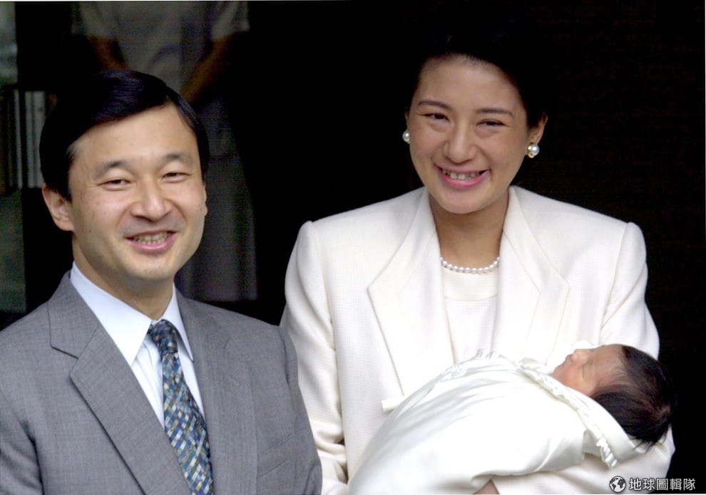 照片中左邊是日本皇室的第二王太子秋篠宮文仁親王,他與太太秋篠宮妃紀子一起抱著剛出生的悠仁親王寶寶。這位寶寶是日本皇室41年來首位男性新成員。