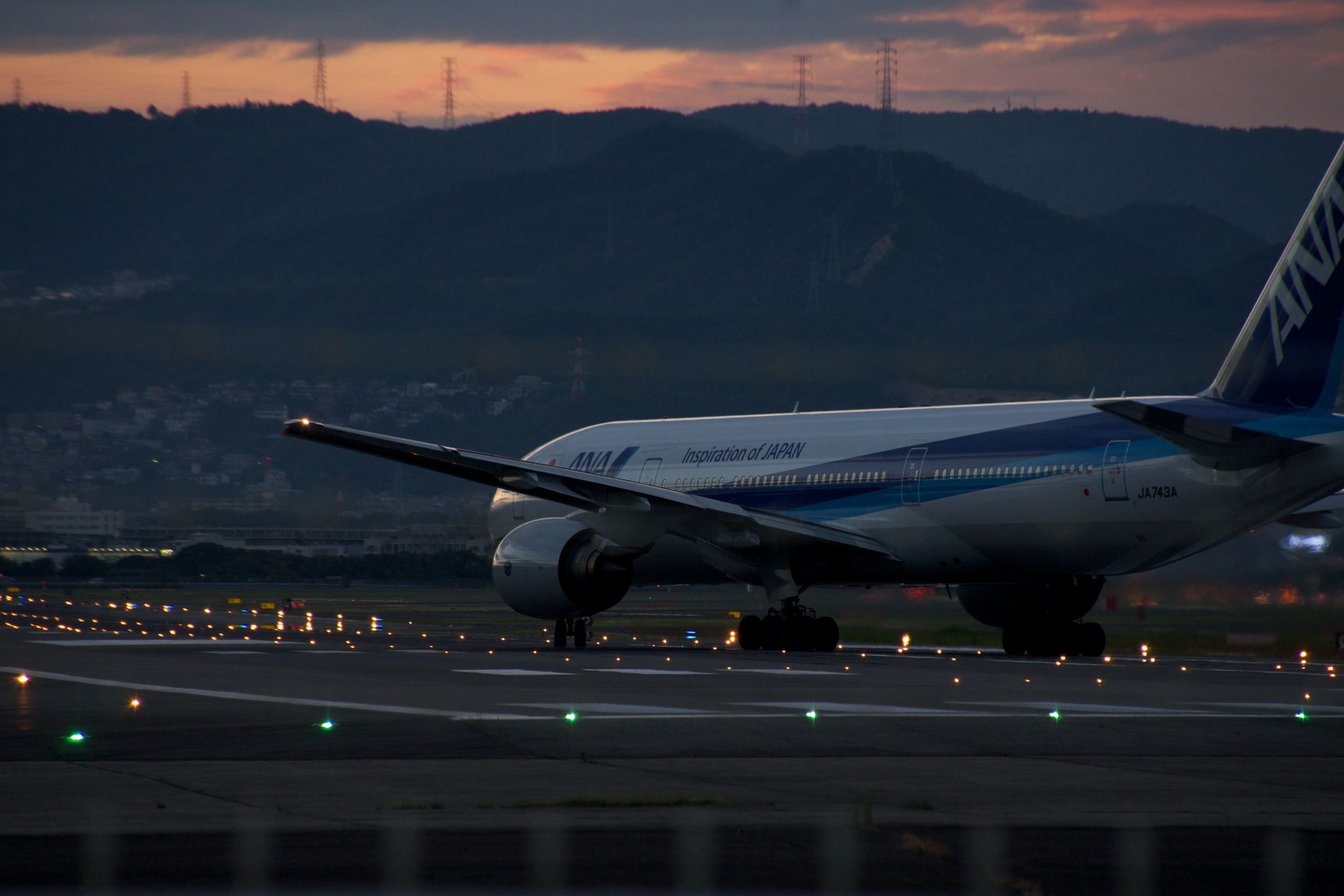 圖為一架ANA全日空的波音 777客機準備從大阪伊丹空港起飛。