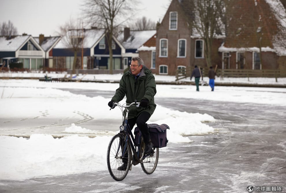一名男子在城市呂伐登騎著腳踏車,這裡獲選為 2018年歐洲文化之都。
