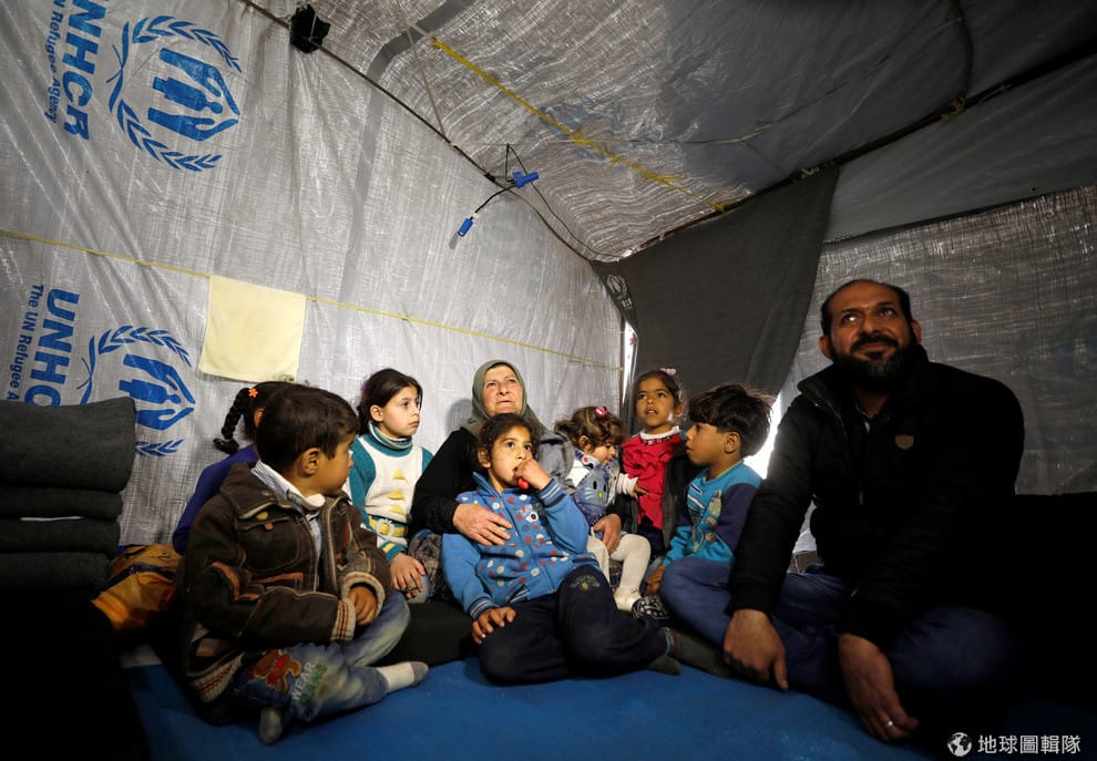 在大馬士革的聯合國難民署搭建的難民營中,嘉爾冒絲(Amira Gharmoush)一家正在接受訪問,這裡住了許多不得不逃離家園的敘利亞難民。