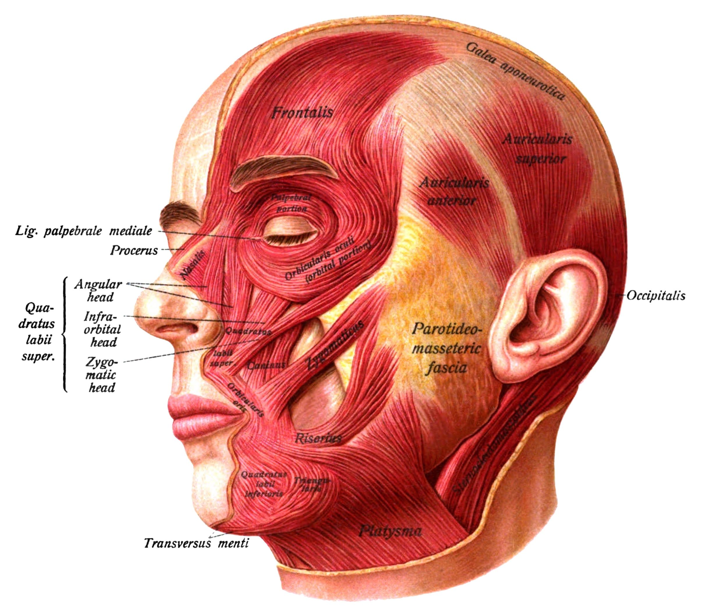 圖為一張臉部肌肉的解剖圖。三個月前,一名男子接受了第二次面部移植手術。