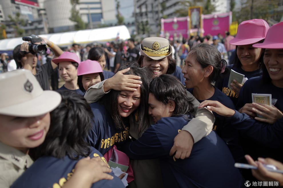 圖為 2011年12月,適逢泰皇蒲美蓬(Bhumibol Adulyadej)生日宣布大赦,泰國Bang Kwang中央監獄的女囚犯們在獲釋前,和女警相擁道別。