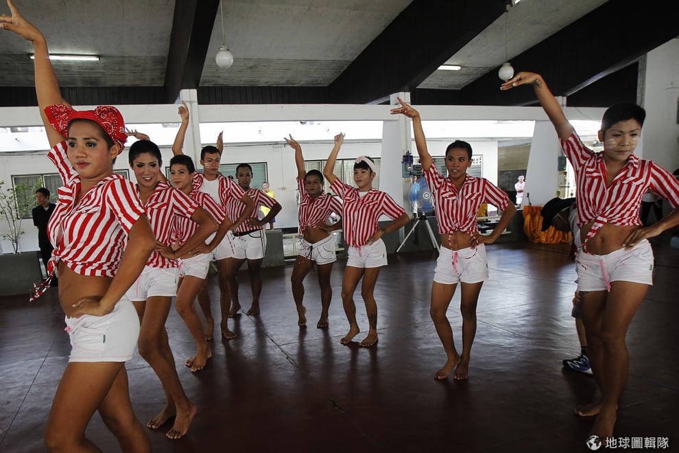 圖為 2012年11月,在曼谷的一間監獄裡舉辦了「江南Style」跳舞比賽,泰國官方希望能藉由這樣的活動建立起受刑人和監獄管理人員間的友誼。