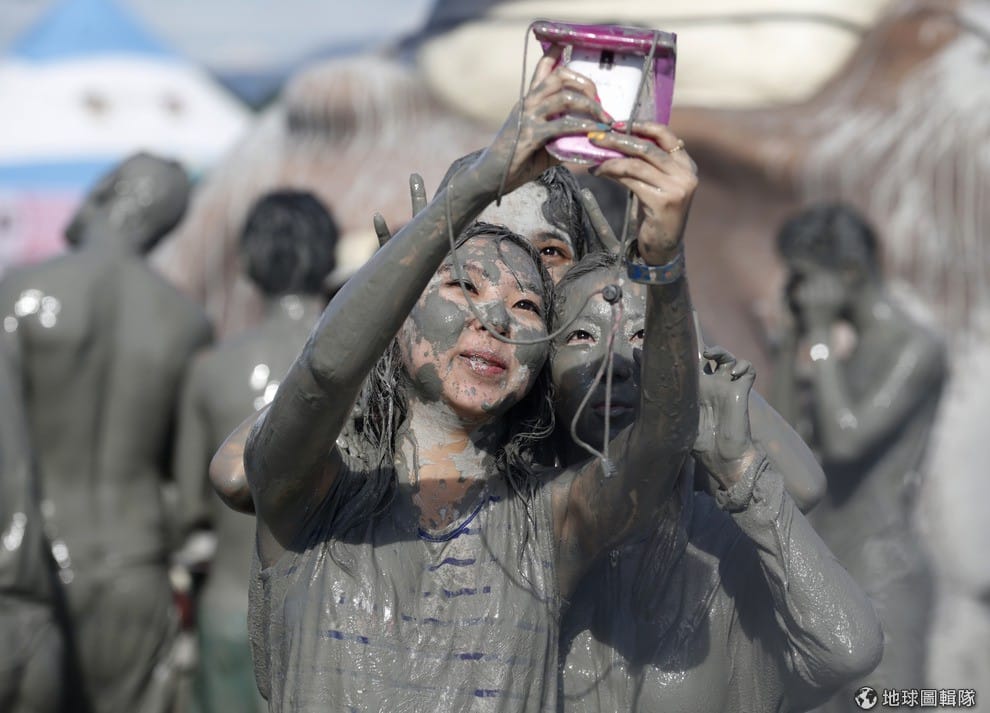 路透社來到泥漿節,每個人都盡可能地把有美容效果的保寧泥巴往身上抹。