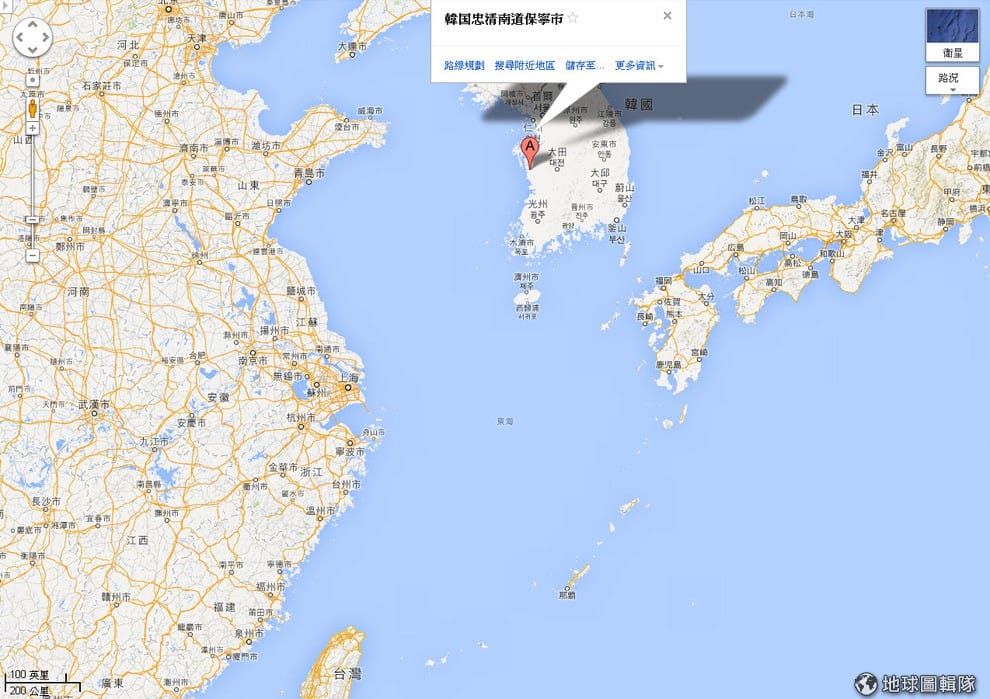 照片中的A點就是保寧市,大約位在南韓首爾南方200公里處。