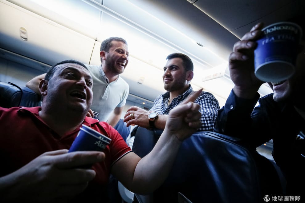圖為 23號,一架從烏克蘭首都基輔(Kiev)飛往葉里溫的班機上,民眾聽到薩奇席恩宣布辭職的消息之後,開心地在機上慶祝。