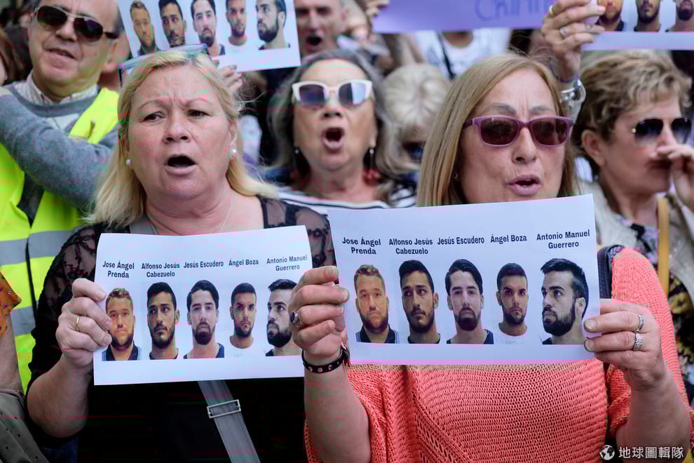 上周四(26),法院終於做出判決,判五名加害男性每人九年有期徒刑,並且這五人得賠償受害女性 5萬歐元(折台幣約 181萬元)。然而,他們被判的罪名是「性虐待」,而非刑期較重的「強暴罪」,因為依照西班牙刑法的規定,「強暴罪」得包含加害者施以暴力或威脅,而在這起案子中,受害者被動順服的模樣被認定加害者沒有施暴,因此不能以「強暴罪」認處。
