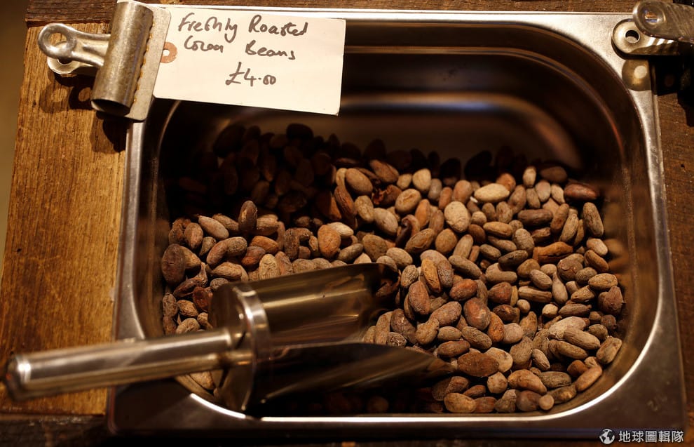 圖為英國倫敦的商店裡,剛烘好不久的可可豆標價為 4英鎊(折台幣約 163元)。