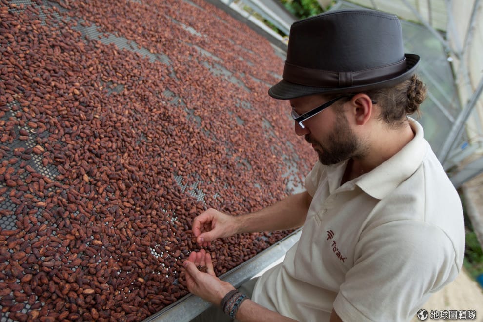 圖為一名奧地利男子,在厄瓜多的一間可可農場挑選可可豆。