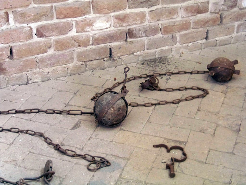 在戒斷中心內,為了避免成癮者傷害自己或破壞環境,工作人員會利用腳鐐把成癮者鏈在地上。