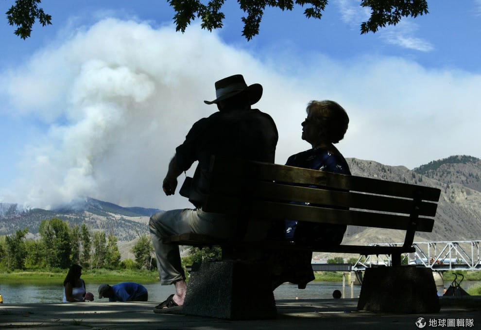 圖為 2003年8月,一對夫妻坐在河濱公園享受著眼前的美景。