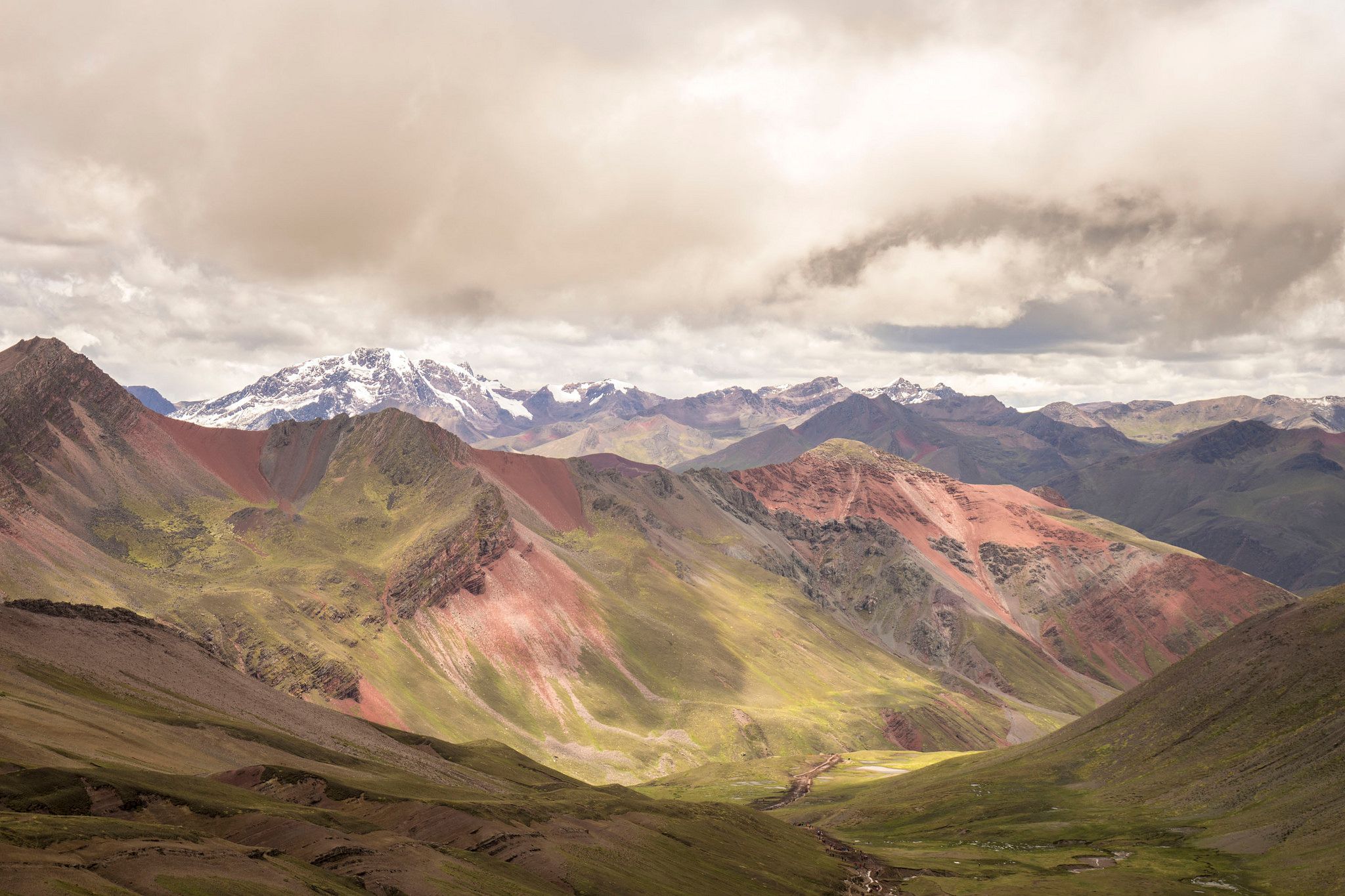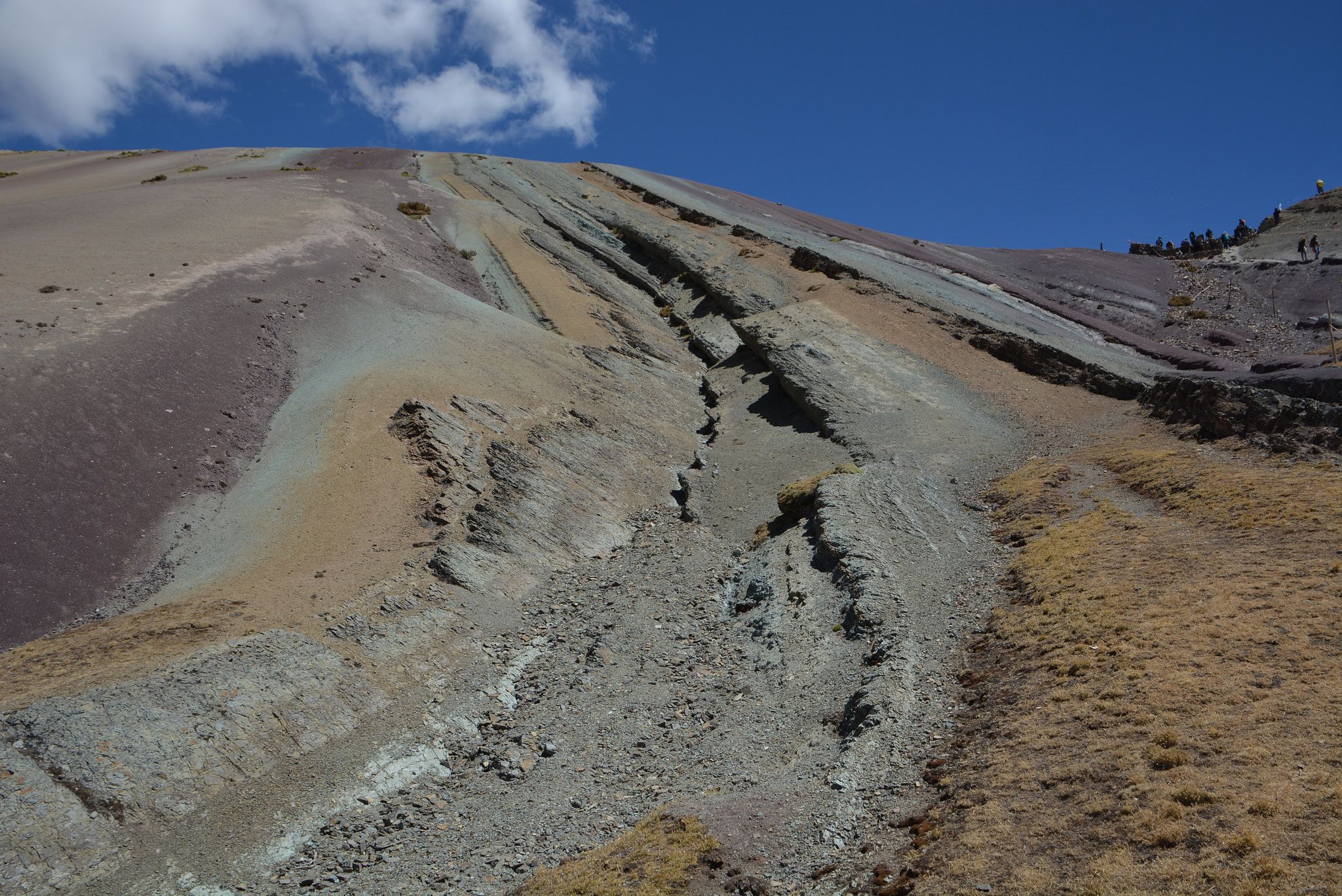 在秘魯境內的安地斯山脈上,有一處被稱為「彩虹山」(Vinicunca或Rainbow Mountain)的景點。在這裡,你可以看見一層又一層藍綠色、紫羅蘭色、金黃色的沉積岩,因為板塊擠壓而露出地表。