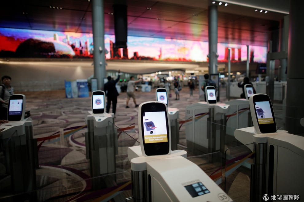 在去年十月啟用的樟宜機場第四航廈內,安裝了大量自動通關機供旅客使用。