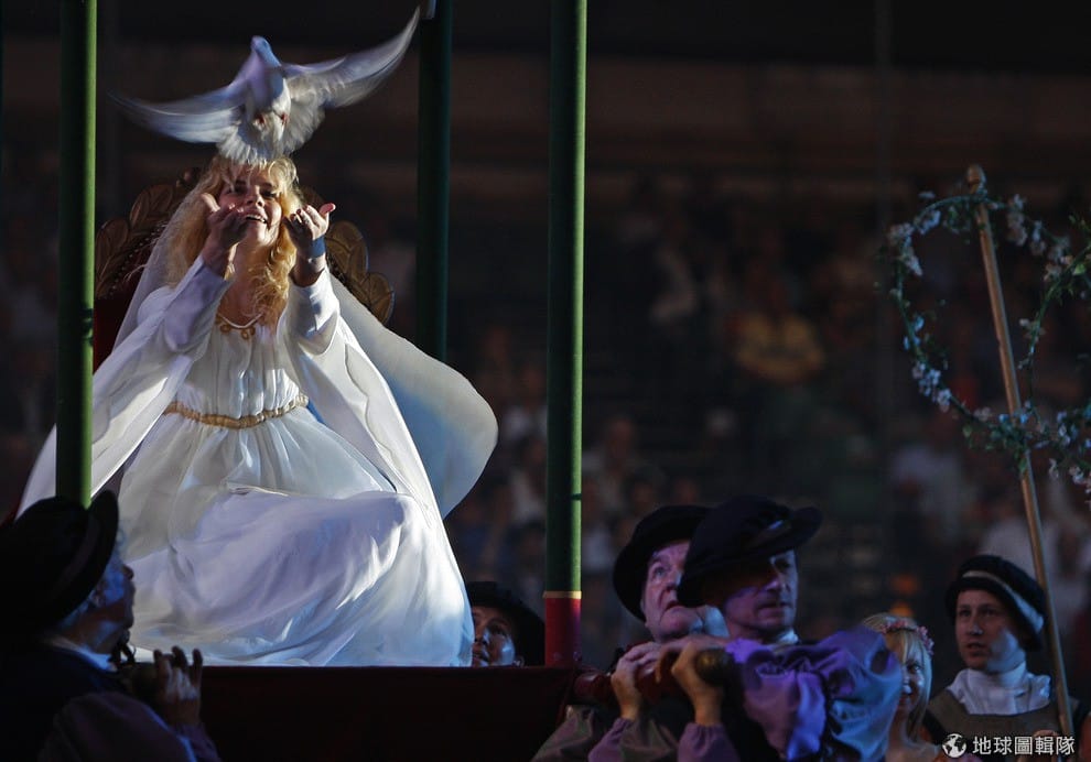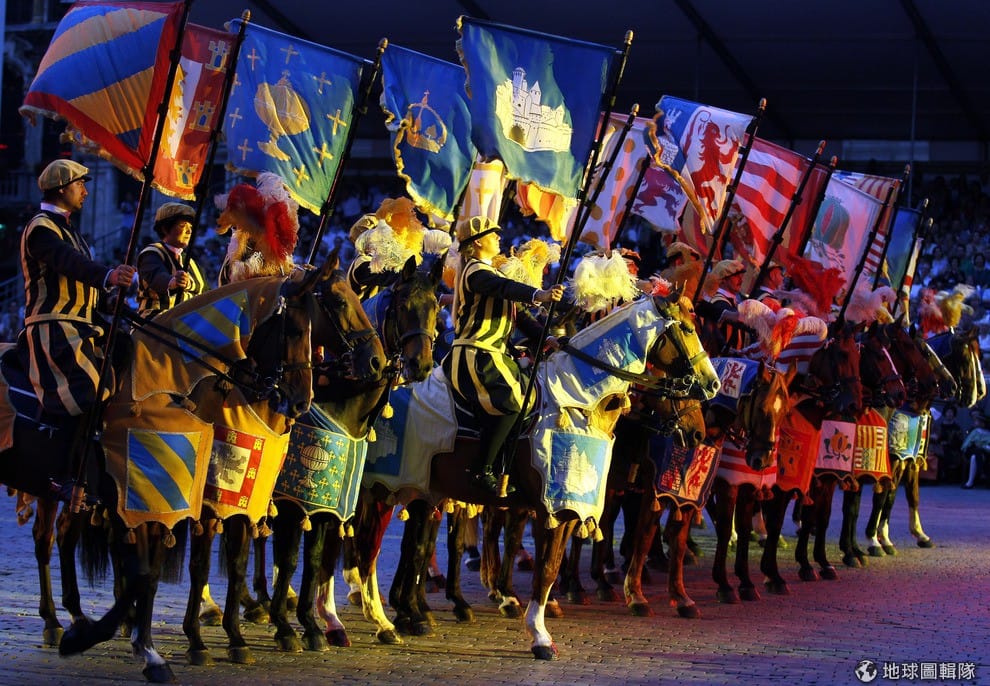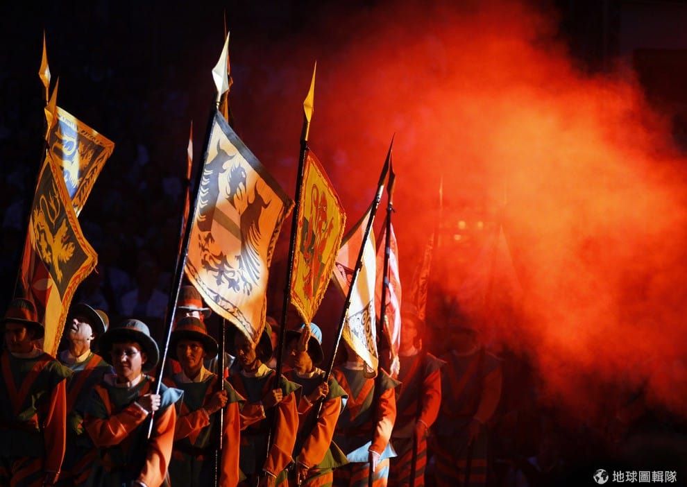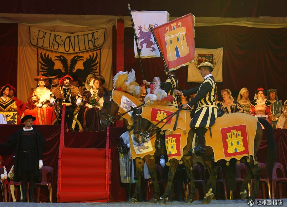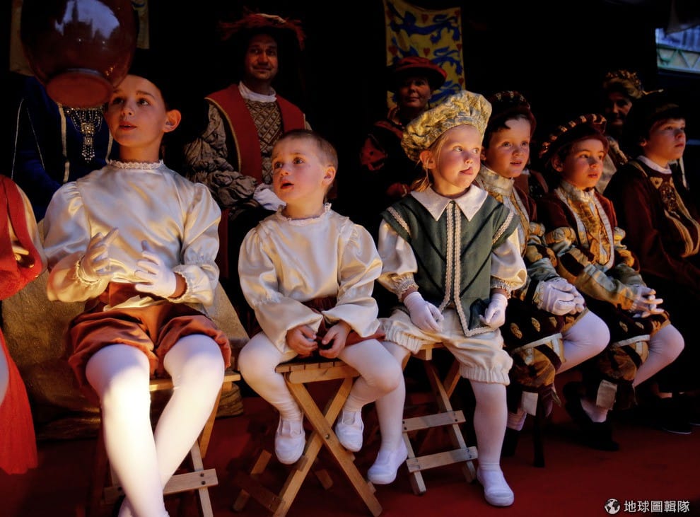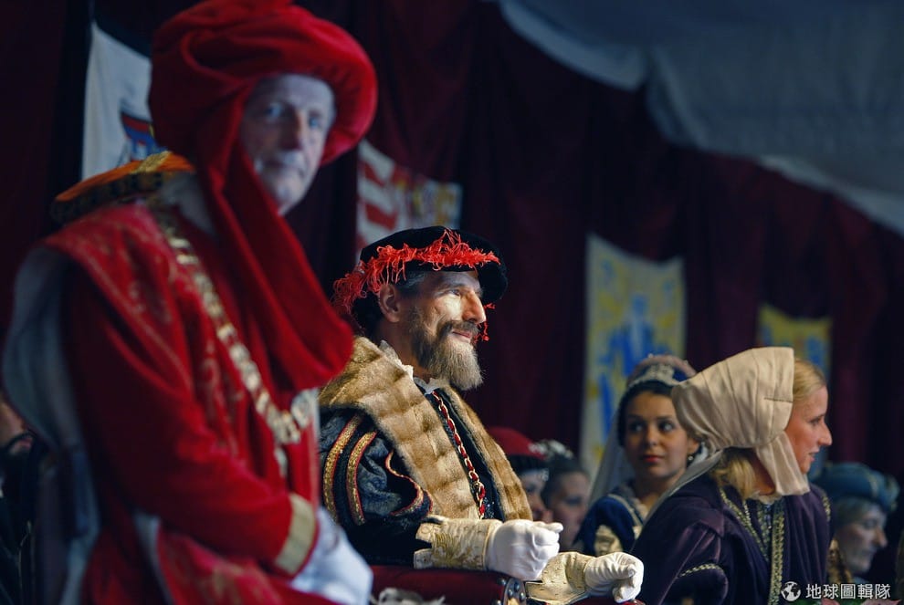 路透社不論是守衛、旗手、貴族,所有人穿的服裝都非常講究細節,彷彿真的穿越了時空,來到16世紀的中古歐洲。