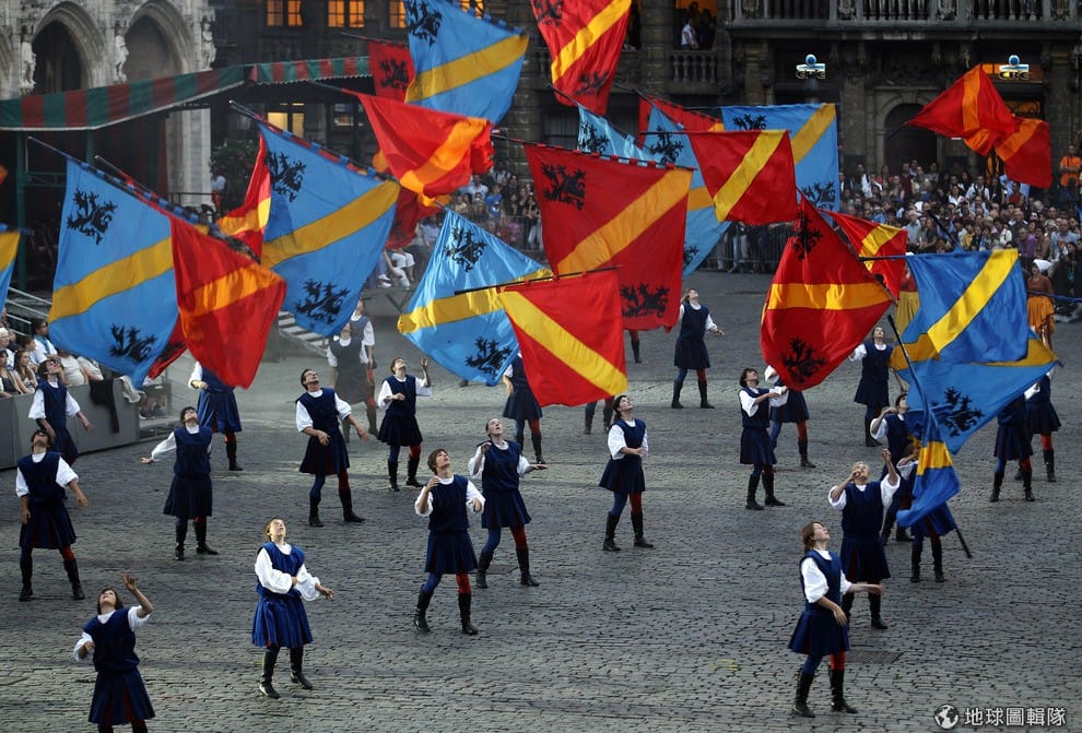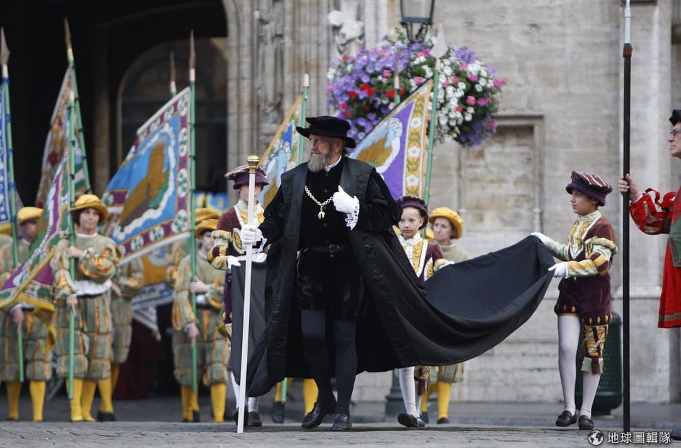 路透社人們穿著古裝在布魯塞爾的廣場(Grand-Place)遊行,襯上現代科技的華麗燈光秀,給人似古似今的奇異感受。