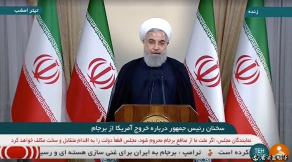 在收到美國撤出核協議的決定後,伊朗總統魯哈尼在電視轉播中向民眾喊話。