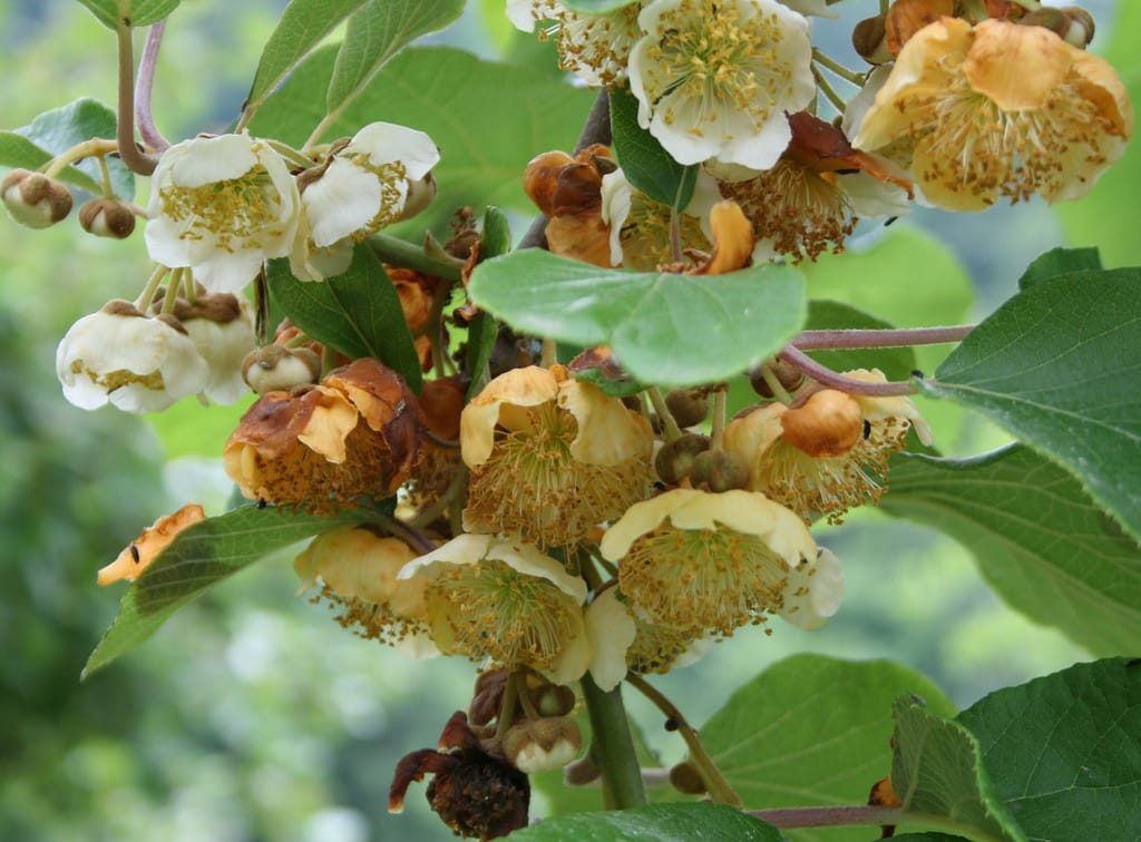 隨著奇異果產業大缺工,今年的紐西蘭奇異果還有不少來不及採收。圖為準備長出奇異果的奇異果花。