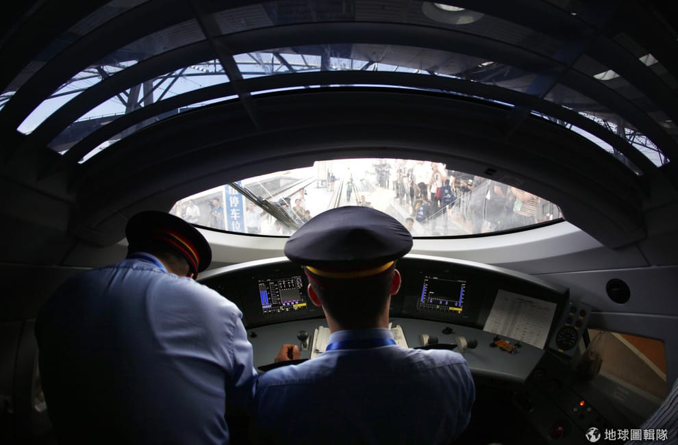 圖為正在高鐵駕駛艙內的中國高鐵駕駛員,他們因為工作性質的關係,工時在法律上可以比一般人長。