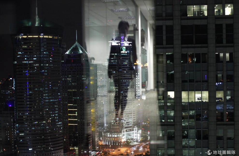 在上海浦東陸家嘴金融區,商辦大樓到了夜晚依然燈火通明,仍有無數的年輕人在大樓裡加班。