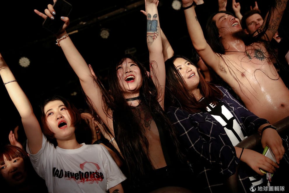 在北京的Mao Live House,年輕人跟著搖滾樂的節奏舞動自己的身軀。