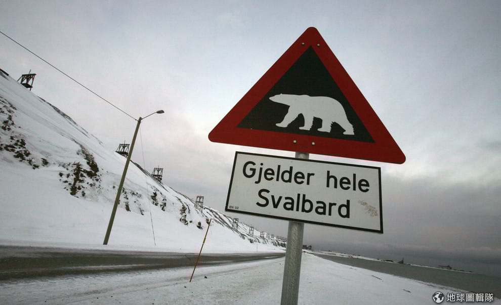 除了死亡問題,另一個隆雅市居民要注意的問題就是北極熊。畫面中的北極熊警告標語寫著:「適用於所有的斯瓦巴群島。」