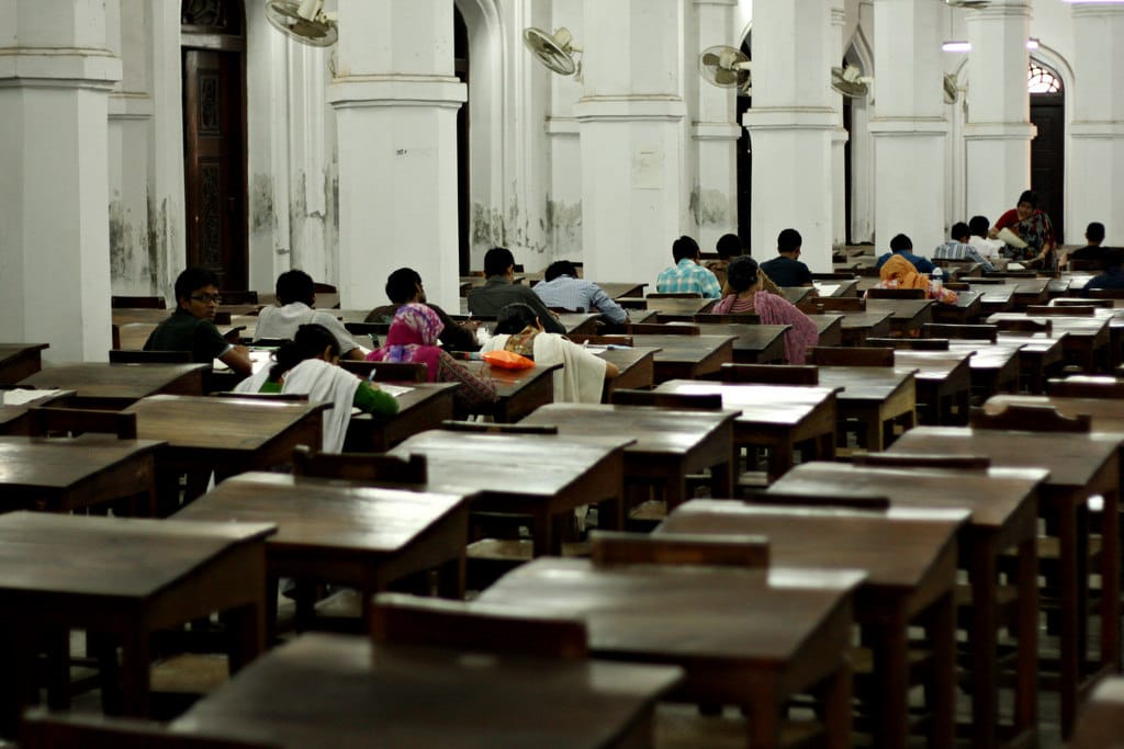 圖為考試中的達卡大學(University of Dhaka)學生。對於孟加拉人來說,公務員是有錢又有名望的好工作,每年都有大批應屆畢業生想報考公職。