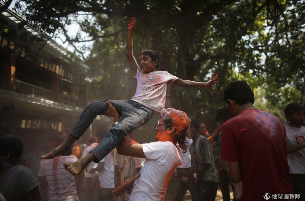 圖為 2013年3月,達卡大學美術學院(Fine Art Institute)校園裡,學生們開心地慶祝色彩節(Holi)。