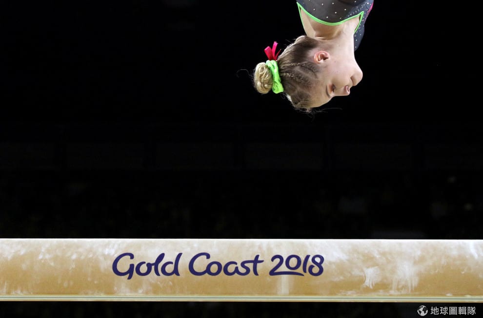 圖為今年 4月,在澳洲舉辦的大英國協運動會現場,畫面中正在進行平衡木比賽。