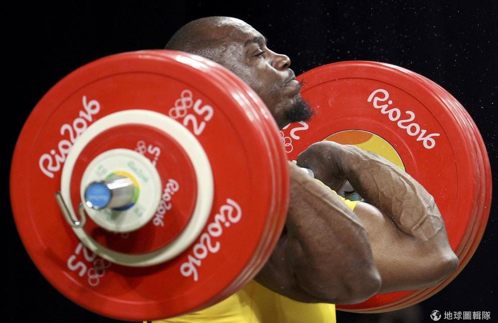 在 2016年8月的巴西里約奧運上,澳洲舉重選手里布恩正在進行男子 94公斤級比賽B組比賽。