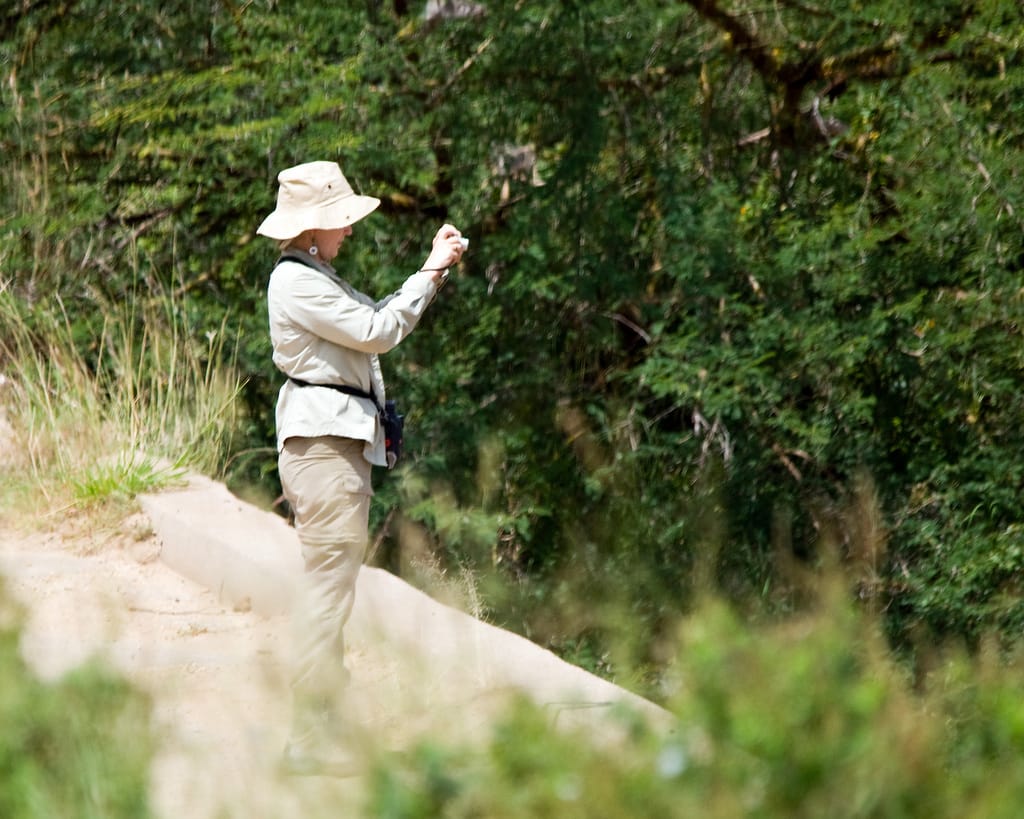 一名遊客拿起相機拍下眼前馬拉河的美景。當枯水期時,河馬排泄物對下游造成的影響不大,然而一到豐水期下游的魚群就要小心了。