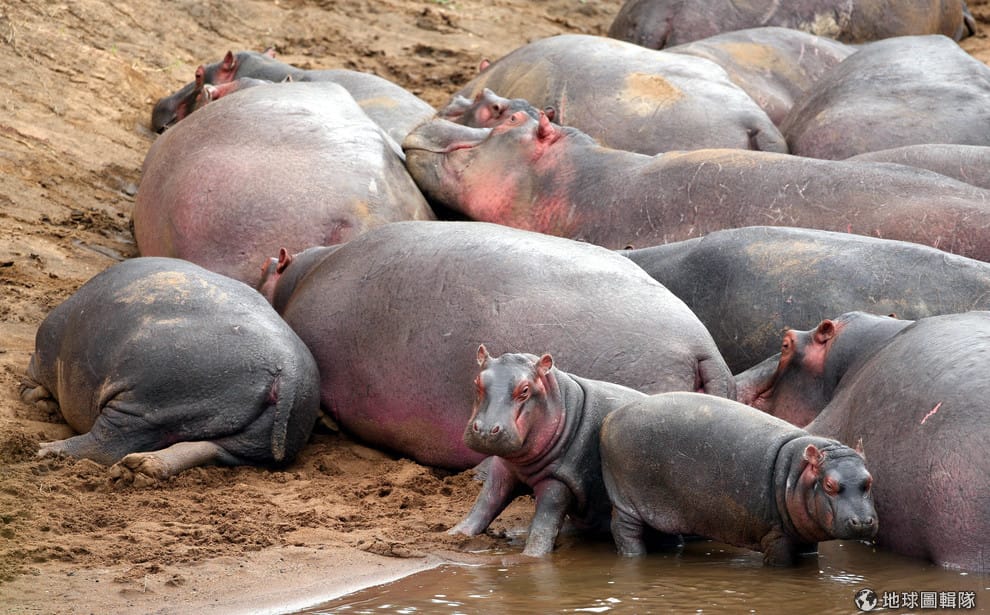 圖為在馬拉河中,成群結隊準備上岸的河馬。這次的研究推翻了過去人們的認知,讓人得以一窺在人為影響出現前,原始生態系統是如何運作的。