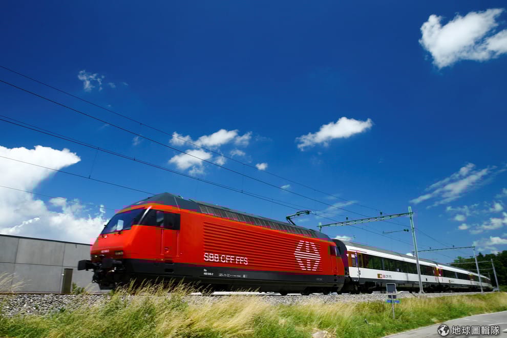 圖為瑞士聯邦鐵路急駛而過的模樣。講到準點率,瑞士的班次也是不遑多讓。