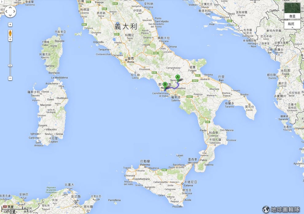 客運原定從照片中的坎帕尼亞省(A點)前往那不勒斯(B點),途中發生事故