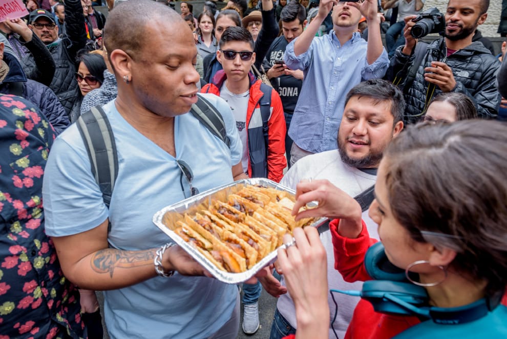 上周五(18),在史拉斯伯格的公寓前出現了一場拉丁派對,西語裔社群自發性地在網路上募資,把墨西哥夾餅餐車、瑪格莉特雞尾酒和墨西哥街頭樂隊都搬到了他的家門口。