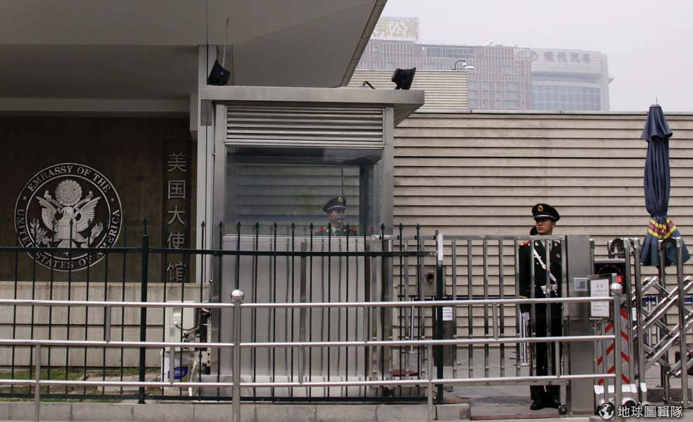 圖為美國駐北京大使館。美國駐北京大使館發言人李金妮表示,駐廣州聽力出問題的人員已經被送回美國。