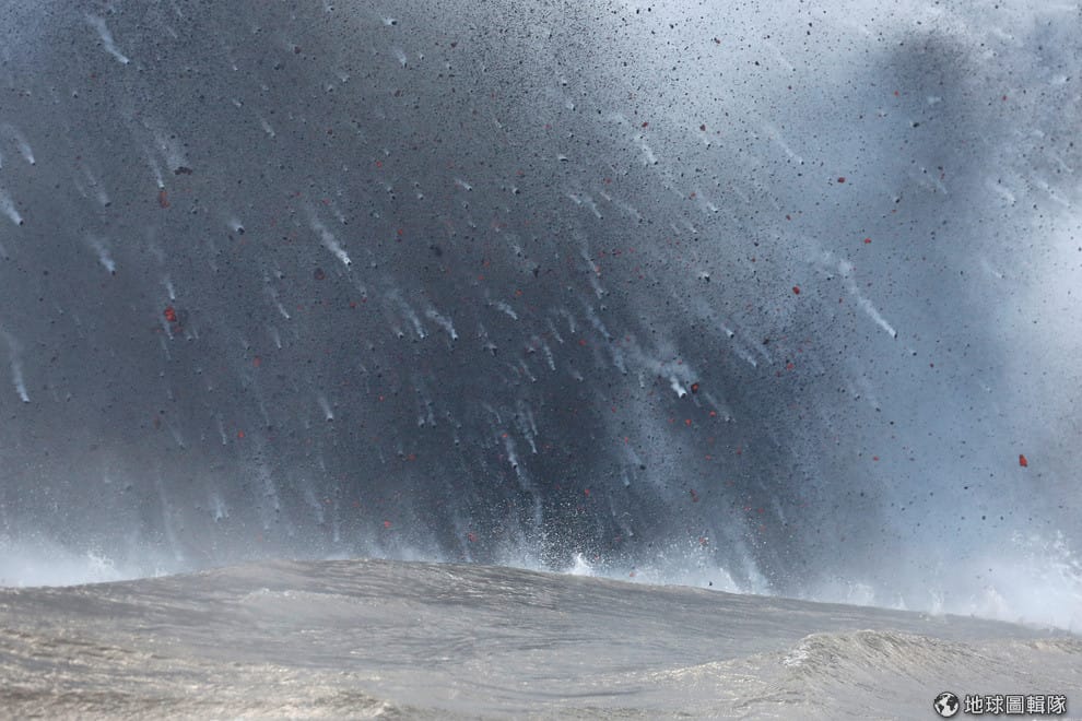 圖為本月 21號,岩漿在噴發後沒入太平洋海的情況。