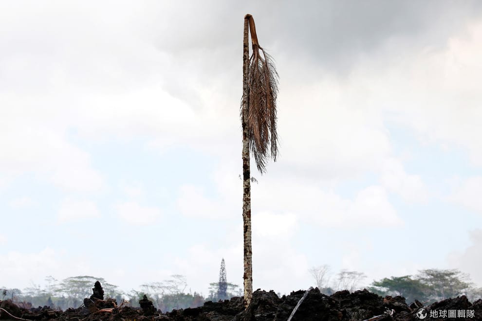 本月 14號,歷經火山噴發後,畫面中的棕梠樹已經沒了生氣。