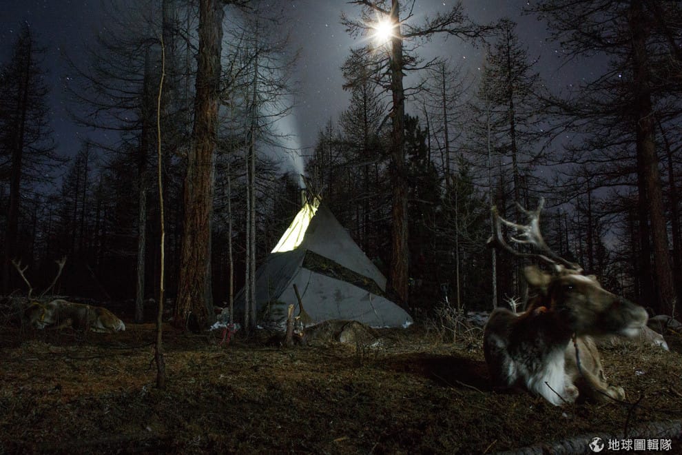 路透社從空中往下看,可以看到丘魯的帳篷還有馴鹿們,這種形式的帳篷中間由木頭柱子支撐,再鋪上帆布來遮風擋雨,就成了圖哈人的臨時居所。