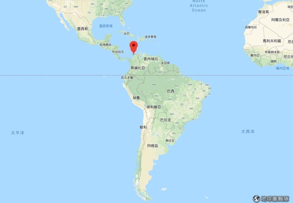 圖中紅色地標處是哥倫比亞卡塔赫納城外海,也是海洋考古團隊發現西班牙帆船「聖荷西號」船骸的地方。
