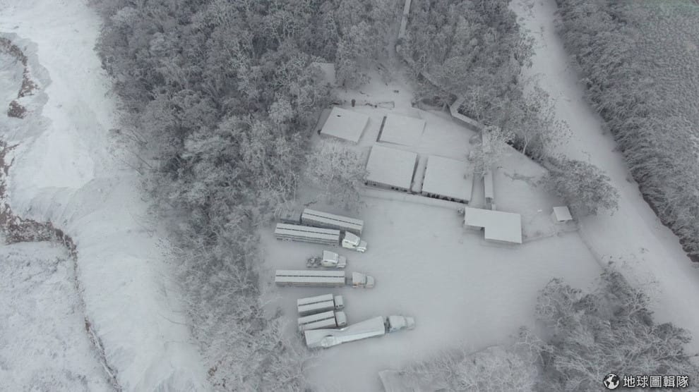 在火峰火山噴發後,可以看到鄰近地區蒙上了一層厚厚的火山灰。