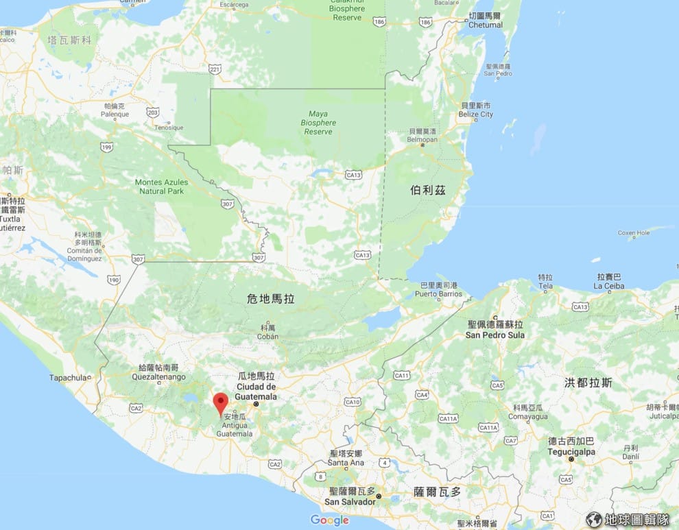圖中標記處即為火峰火山所在位置。當地人指出,火峰火山是中美洲最活躍的火山之一,而這次火山噴發後,也替火山鄰近地區聖米格洛斯洛特斯(San Miguel Los Lotes)、羅迪歐(El Rodeo)帶來影響。