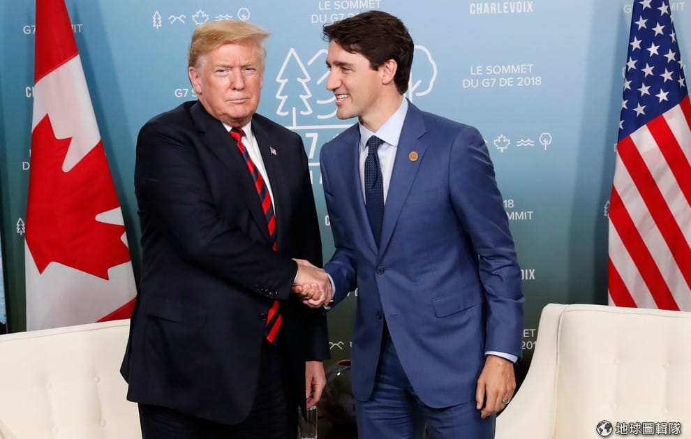 2018年6月8日,在加拿大召開的G7高峰會美國─加拿大雙邊會議上,川普和加拿大總理杜魯道(Justin Trudeau)握手。