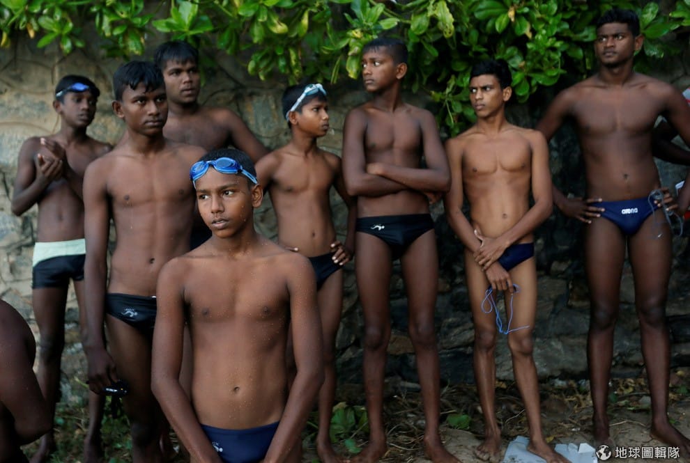 圖為 2017年3月5日,在斯里蘭卡首都可倫坡(Colombo)的海灘旁,有一群穿著泳褲的男子正準備參加一年一度的三公里海泳比賽。愛因斯坦的亞洲行曾經來過斯里蘭卡可倫坡。