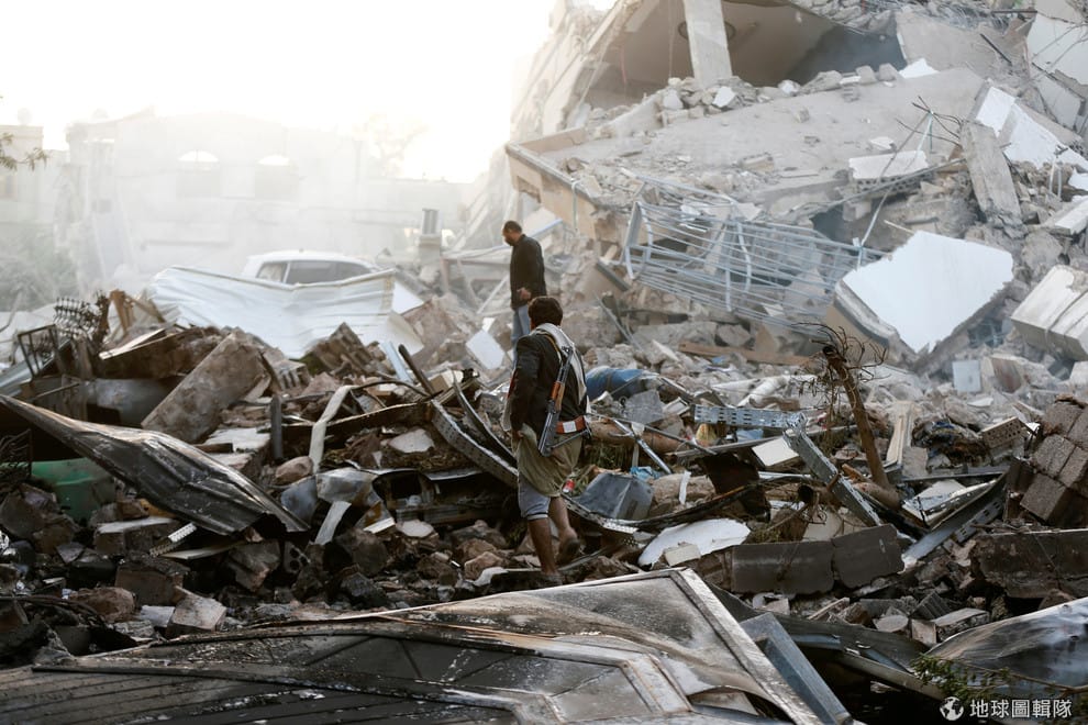 除了荷台達港,葉門首都沙那(Sanaa)也遭到沙國聯軍的空襲,人們走在斷垣殘壁間找尋可用的物資。