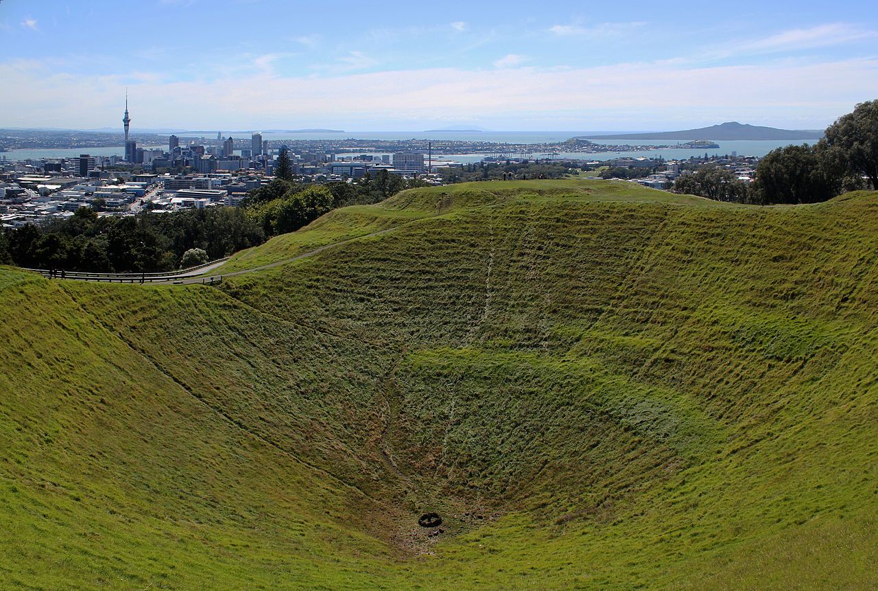 圖為位於奧克蘭的伊甸火山,這裡的凹陷處即為火山口,平常也會被圍起來禁止出入。