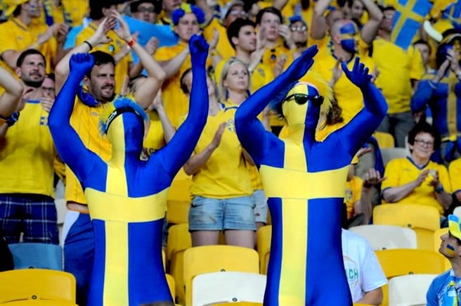 2012年在歐足總歐洲聯賽(UEFA),瑞典國家隊的粉絲正在替球員們加油打氣。