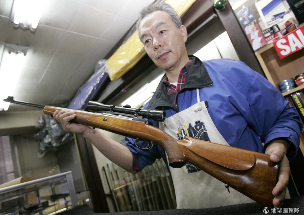 一名日本槍店老闆向鏡頭展示店內販賣的獵槍。在日本,想要擁槍難上加難,這也讓日本槍枝犯罪率奇低無比。