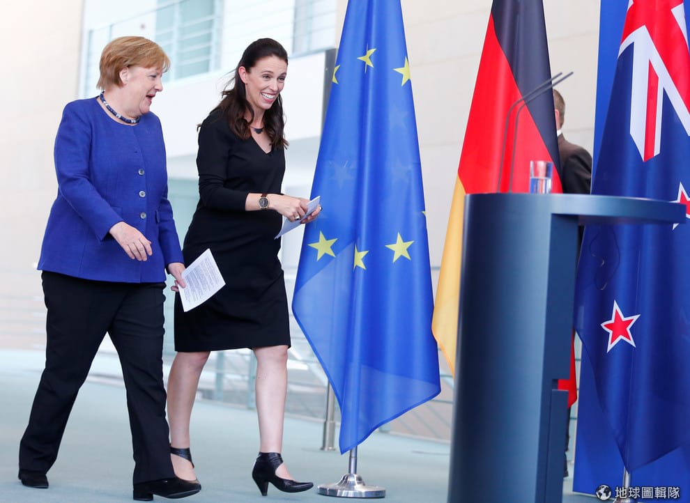 今年四月,紐西蘭總理阿爾登出訪德國,她和德國總理梅克爾(Angela Merkel)正準備召開共同記者會。